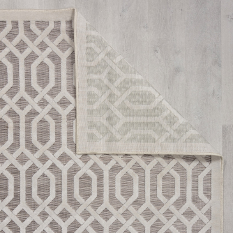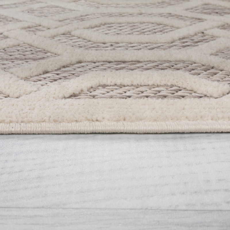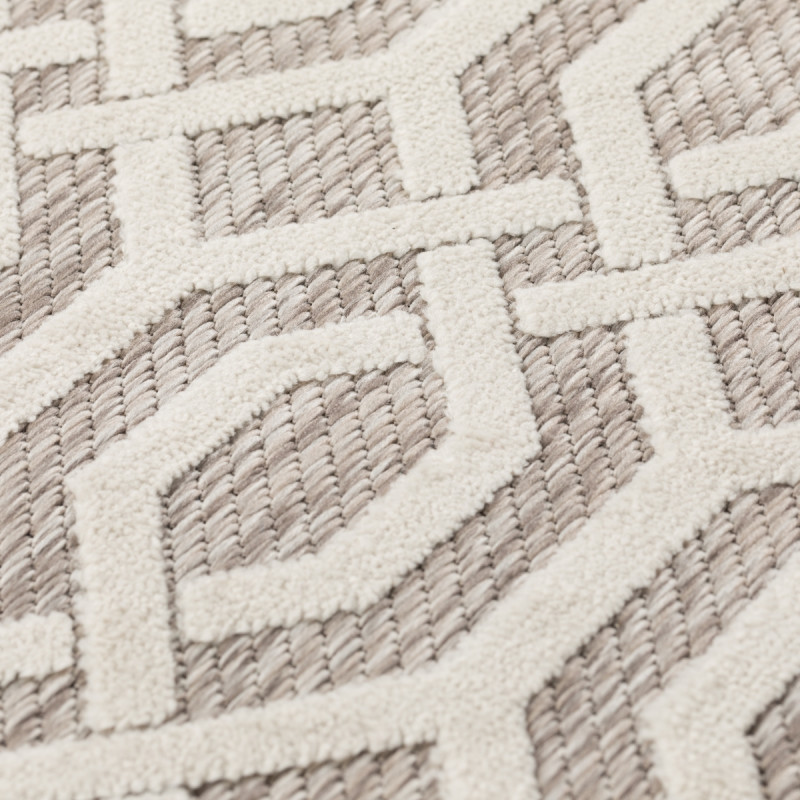 Nízko-profilový koberec v prírodnej béžovej farbe nájde uplatnenie nielen v obývacej izbe, ale aj v chodbe, kuchyni alebo na terase. Základom sú veľmi krátke, pevné a odolné slučky z polypropylénu, ktoré sú doplnené krátkym strihaným vlasom, čo vytvára zaujímavý 3D vzor. Koberec je ľahký na údržbu aj čistenie - môžete ho dokonca opláchnuť vodou.