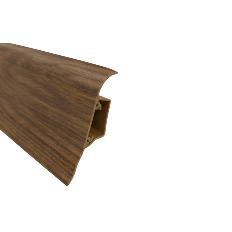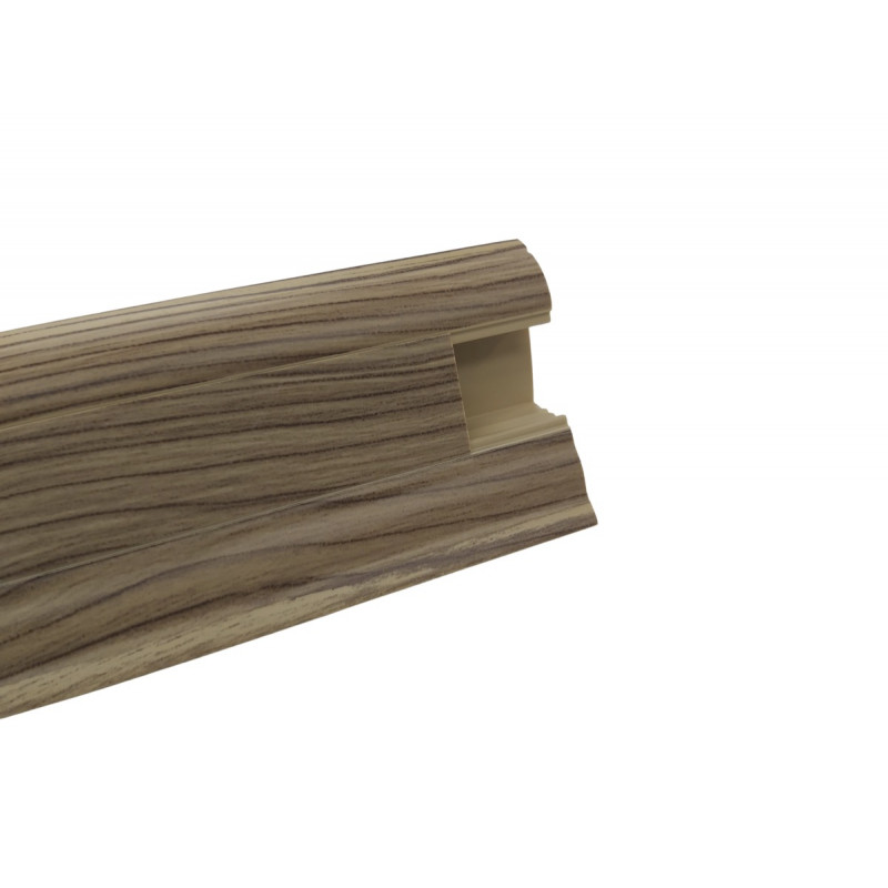 Soklová obvodová lišta SLK50 v dekore Orechového dreva na použitie v kombinácii s PVC vrátane všetkých potrebných doplnkov, ako sú rohy, spojky a koncovky. Táto lišta v sebe obsahuje káblový kanálik, pričom kábel je možné ťahať aj cez jednotlivé komponenty. Lišta je opatrená mäkkými manžetami pri podlahe a stene. Vyrába sa z materiálu na báze PVC.