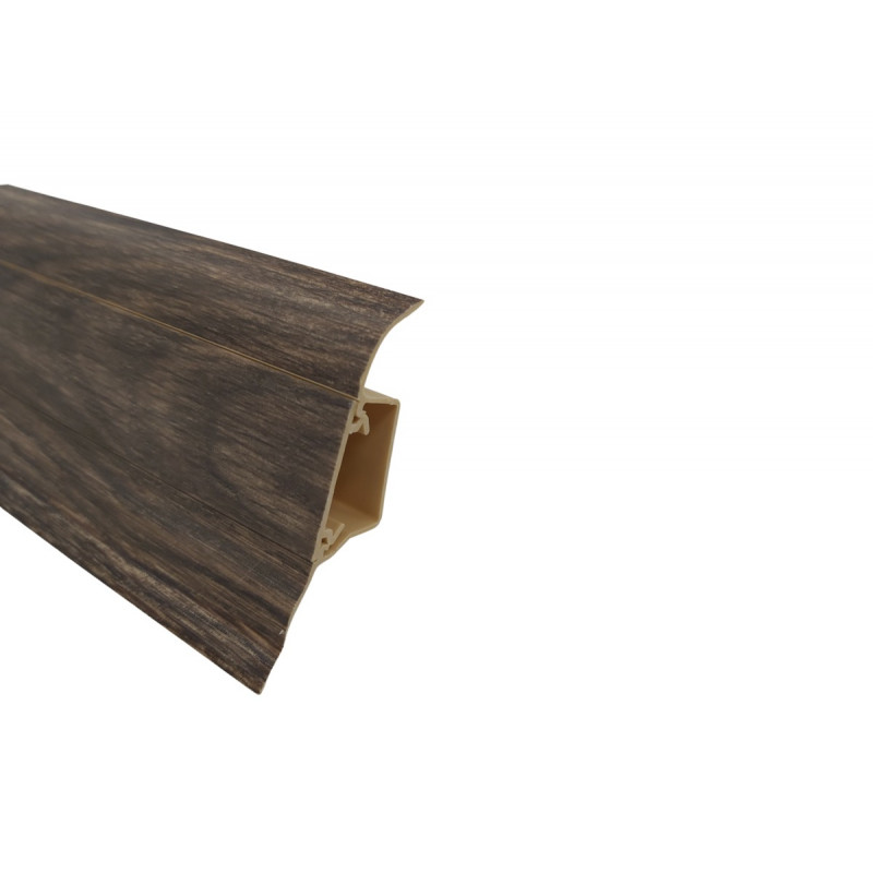 Soklová obvodová lišta SLK50 v dekore akáciového dreva pre použitie v kombinácii s PVC vrátane všetkých potrebných doplnkov ako sú rohy, spojky a koncovky. Táto lišta v sebe obsahuje káblový kanálik, kde kábel je možné ťahať aj cez jednotlivé komponenty. Lišta je opatrená mäkkými manžetami pri podlahe a stene. Vyrába sa z materiálu na báze PVC.