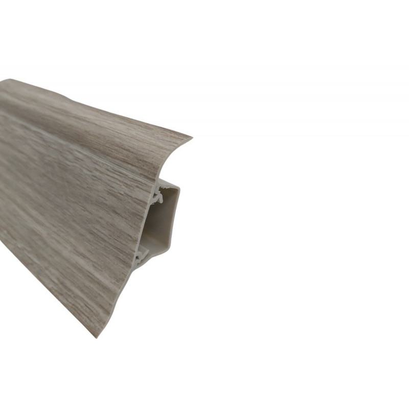 Soklová obvodová lišta SLK50 v dekore Dubového dreva pre použitie v kombinácii s PVC vrátane všetkých potrebných doplnkov ako sú rohy, spojky a koncovky. Táto lišta v sebe obsahuje káblový kanálik, kde kábel je možné ťahať aj cez jednotlivé komponenty. Lišta je opatrená mäkkými manžetami pri podlahe a stene. Vyrába sa z materiálu na báze PVC.