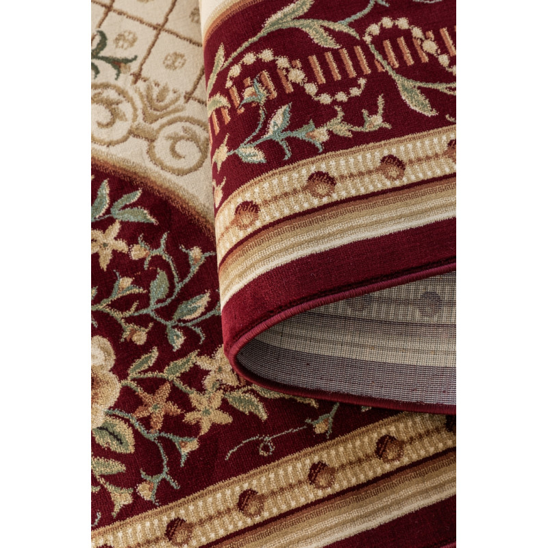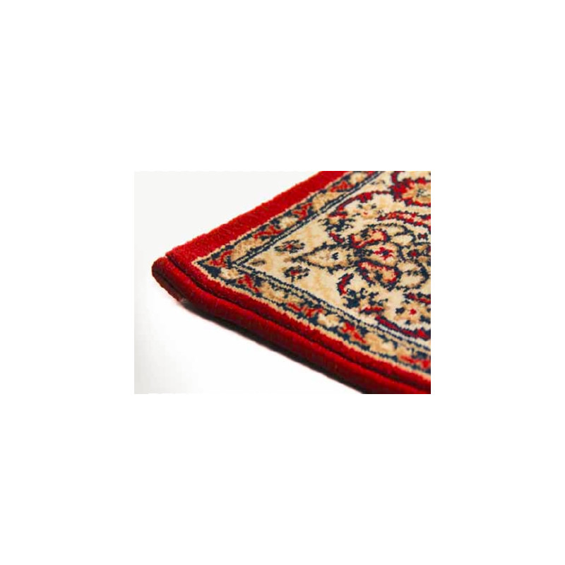 Výrazne červený koberec s orientálnym motívom rozžiari každú obývaciu izbu alebo spálňu. Je ozdobený rôznofarebnými kvetinovými vzormi. Jeho výhodou je mäkký a komfortný povrch, čo zaisťuje stredne vysoký strihaný vlas z polypropylénu. Ten je navyše odolný a ľahký na údržbu.