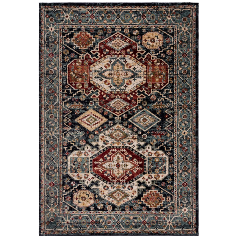 Modrý koberec s rôznofarebnými orientálnymi vzormi prinesie do interiéru živú atmosféru. Jeho dizajn kombinuje tradičné motívy s moderným poňatím, čo vytvára atraktívny kontrast. Je vyrobený zo 100% polypropylénu, a preto ponúka vysokú odolnosť a jednoduchú údržbu.