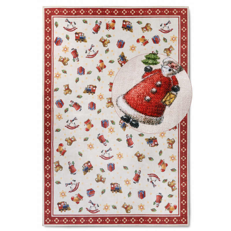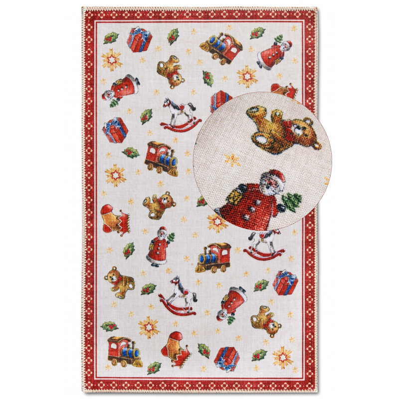 Tento červeno-biely koberec zaujme svojim nádherným vianočným motívom, ktorý okamžite vnesie do vášho interiéru kúzlo Vianoc. Jemné detaily a tradičné sviatočné prvky vytvárajú útulnú atmosféru, ktorá poteší každého milovníka tohto magického obdobia. Elegantná kombinácia červenej a bielej farby je nadčasová a perfektne doplní zimnú výzdobu. Vďaka nízkemu...