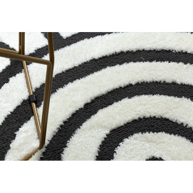 Moderný kruhový koberec v elegantnej bielej farbe je z mäkkého polyesteru, ktorý je nielen príjemný na dotyk, ale aj odolný a ľahko udržiavateľný. Vďaka strihanému vlasu a 3D motívu koberec pôsobí luxusným dojmom a prináša do interiéru unikátnu textúru. Rubová strana je opatrená latexom, čo zaisťuje stabilitu na podlahe. Môžete ho bez obáv použiť na...