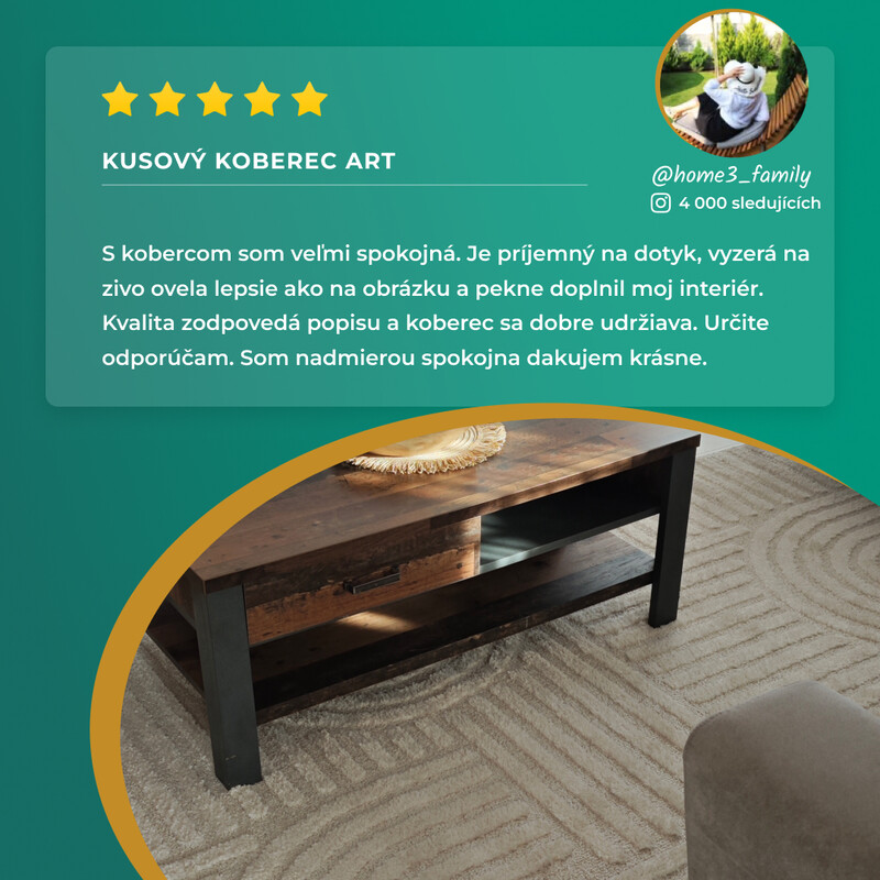 Tento koberec má na spodnej strane vrstvu juty, vďaka ktorej sa dá povedať, že je vyrobený z prírodného materiálu a je šetrný k životnému prostrediu. Je tiež odolný a má dlhú životnosť, takže si ho doma môžete užívať o niečo dlhšie.
