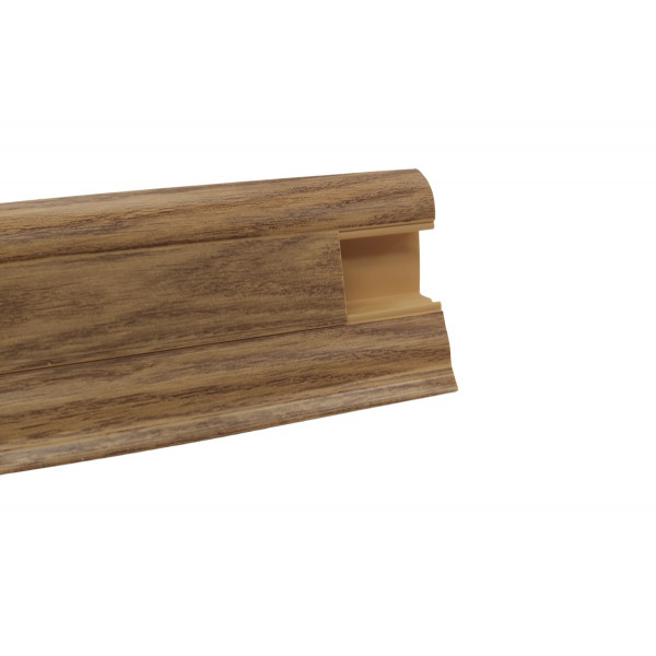 Vybrali sme lištu, ktorá sa farebne hodí k tejto podlahe. Lišta slúži na estetické zakončenie podlahy pri stene, obsahuje kanálik, ktorým je možné pretiahnuť káble.