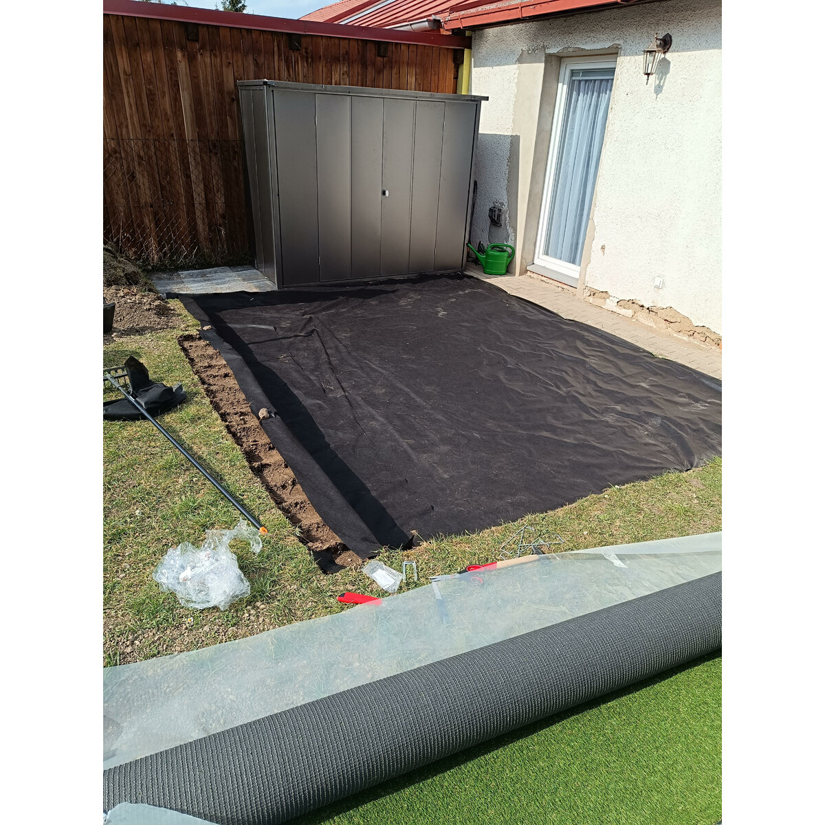 Základom je rovná a spevnená plocha. Trávu je možné položiť buď na mäkký povrch, napr. na klasickú zeminu – v tom prípade sa používa geotextílie, ktorá zabráni prerastaniu buriny a pomôže udržať stabilitu povrchu 🌱. Na ukotvenie slúži kotviace skoby na okraje
